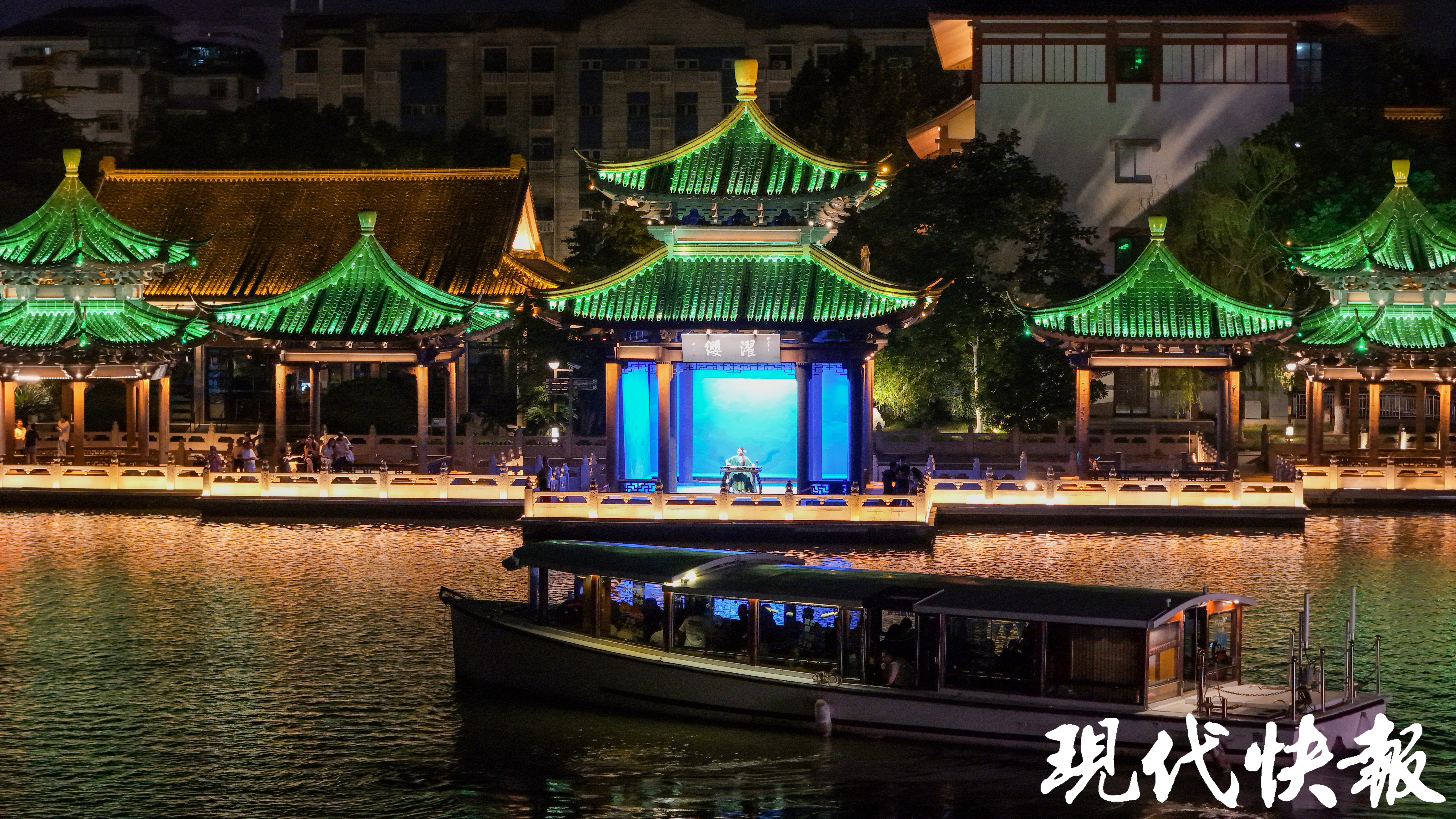 泛舟河上,现代快报记者注意到,梅庵琴韵、蓝白雅韵、板鹞声韵等多重南通符号,以及张謇实业救国理想,和把南通打造成“中国近代第一城”的故事,通过广播情境剧巧妙串联,生动呈现南通的实业传统、人文积淀与城市愿景,让游客在夜色漫游中穿梭于现实与历史之间,感受“中国近代第一城”的文化厚度与当代活力。